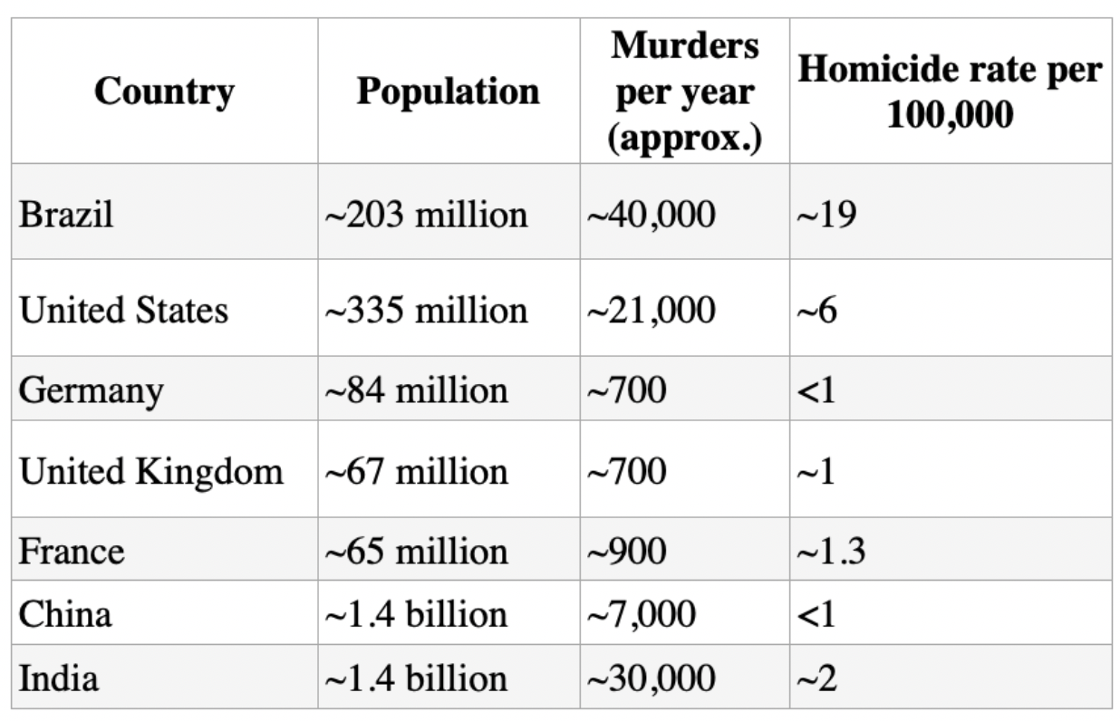 The scale of violence in Brazil becomes clearer when compared internationally.